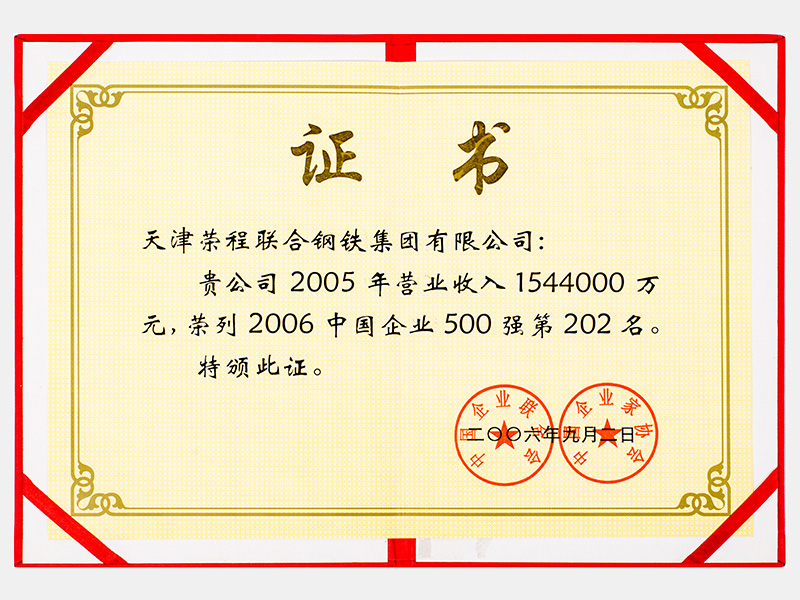 2005年營業(yè)收入1544000萬元,榮列2006中國企業(yè)500強第202名